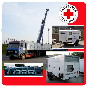 Verladung und Transport von Stromaggregaten und Hilfsgütern für das DRK in Krisengebiete. |